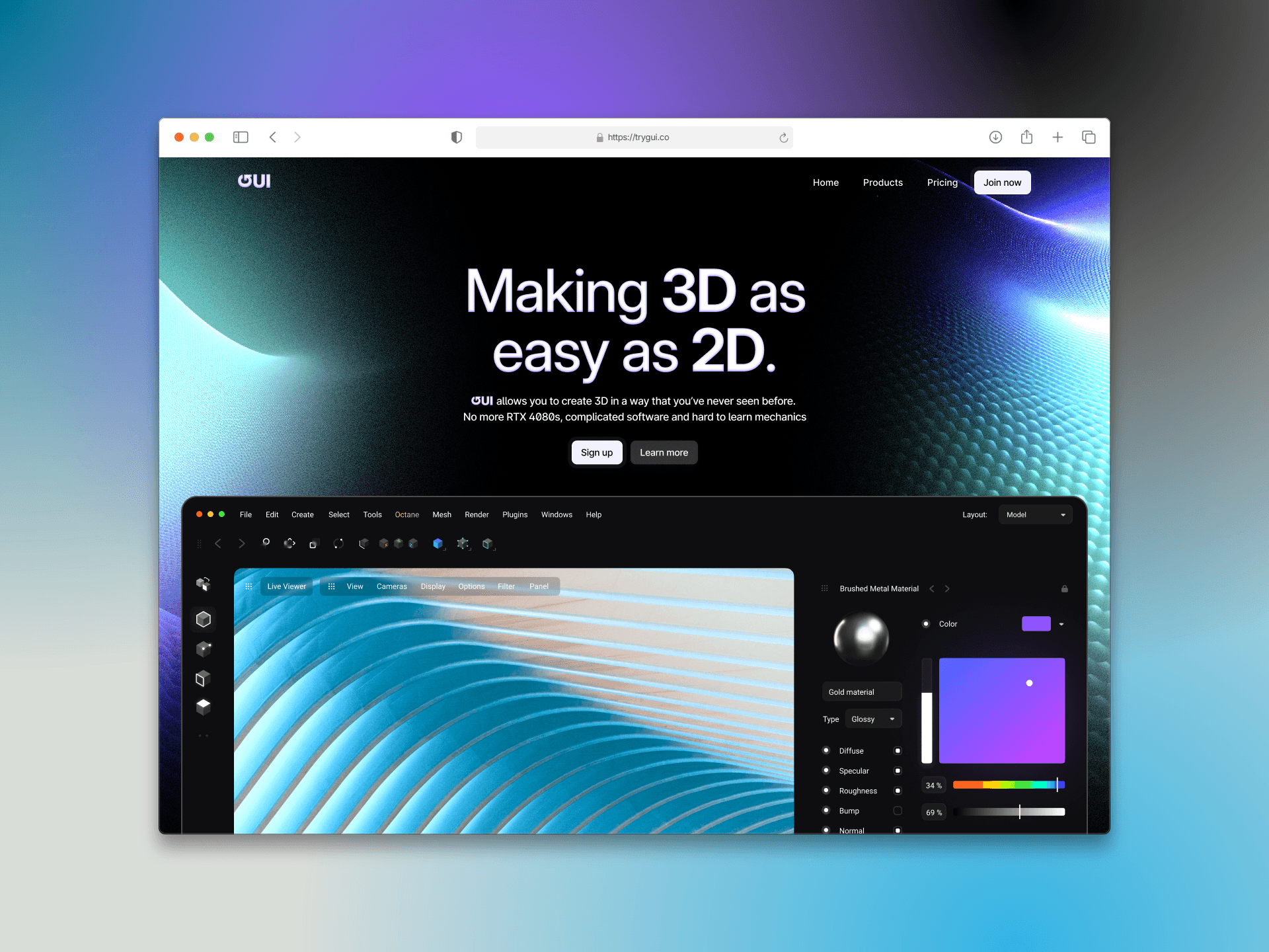The freedom of creation shouldn't be locked behind a paywall, steep learning curve or even gatekeeping. GUI gives its users the ability to create masterpieces everywhere, and from every machine. The GPU-accelerated engine gets the most power out of modern and even not-so-modern graphics cards, giving the user real-time feedback as they sculpt, model and render.