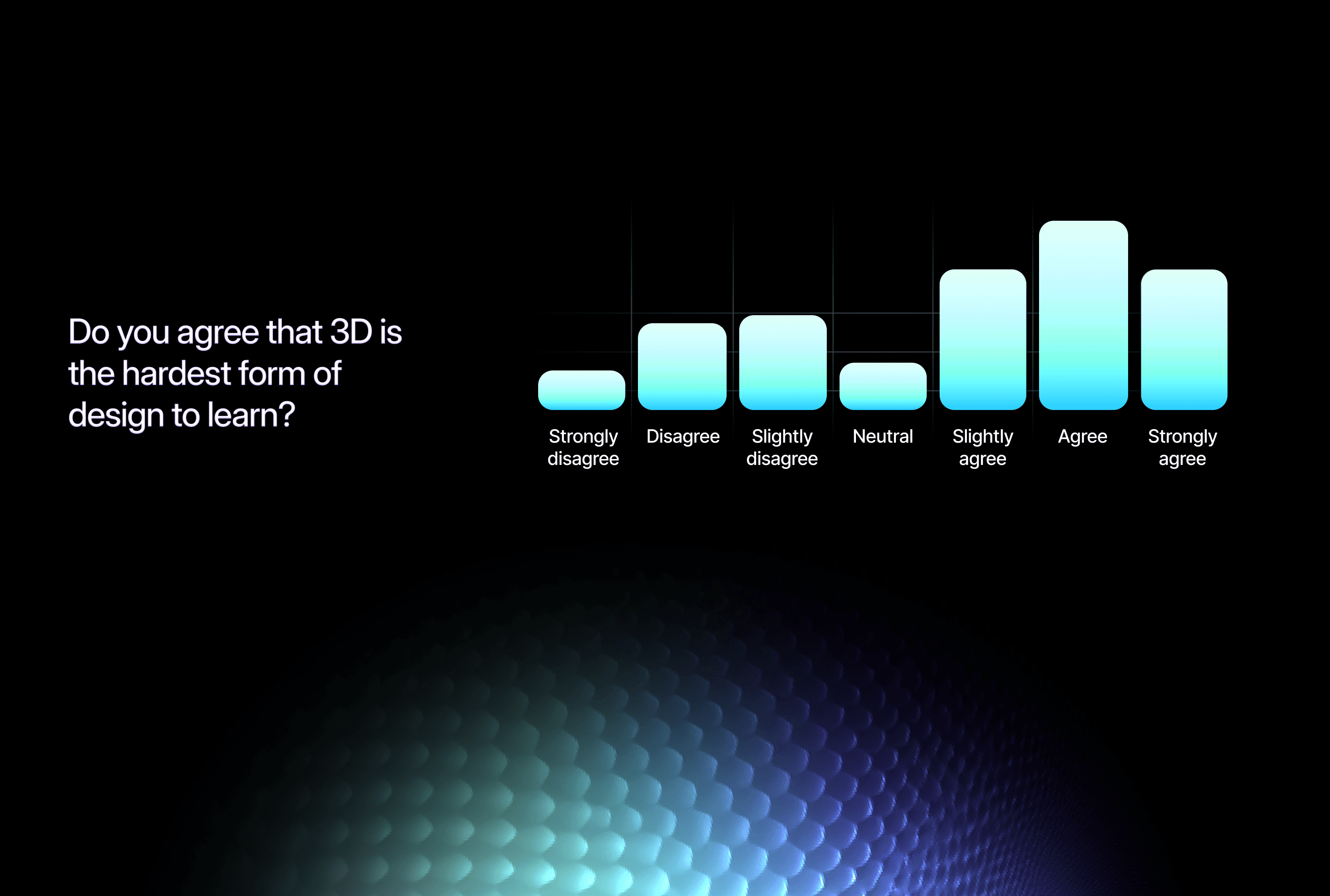 When conducting a research among 100 graphic designers, we got pretty conclusive answers. A vast majority of the surveyed agreed that 3D design, as well as 3D software, is the hardest to pick up as a skill, let alone master. This showed us that there is an opportunity to introduce a product that makes 3D accessible to everyone, even to designers at the beginner level. It turns out there is a significant market gap in 3D software that teaches the user not only what all the buttons do, but also how to create effective and mesmerizing projects and assets.